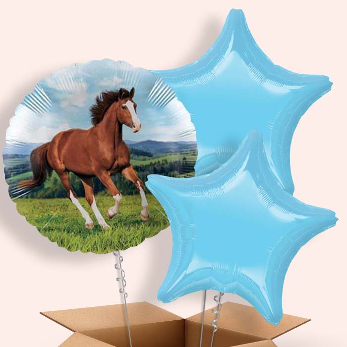 Our Horse Foil Balloon in a Box Gift not only makes a perfect gift, but it is a must for a horse themed party. Delivered in a box, inflated with helium by our team, it is ready to use as a party decoration and makes a perfect birthday surprise. This Horse Foil Balloon in a Box is a great gift for an equine lover, especially as a birthday treat! It is also the easiest of party decorations to use, supplied ready inflated in the box, all you have to do is take it out and place it where you see fit!