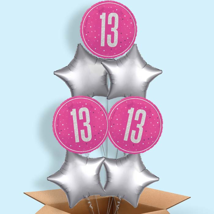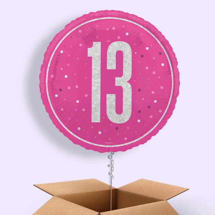 Our Hot Pink and Silver 13th Birthday Foil Balloon in a Box is a great gift makes a great birthday surprise! They also make a great table decoration too!