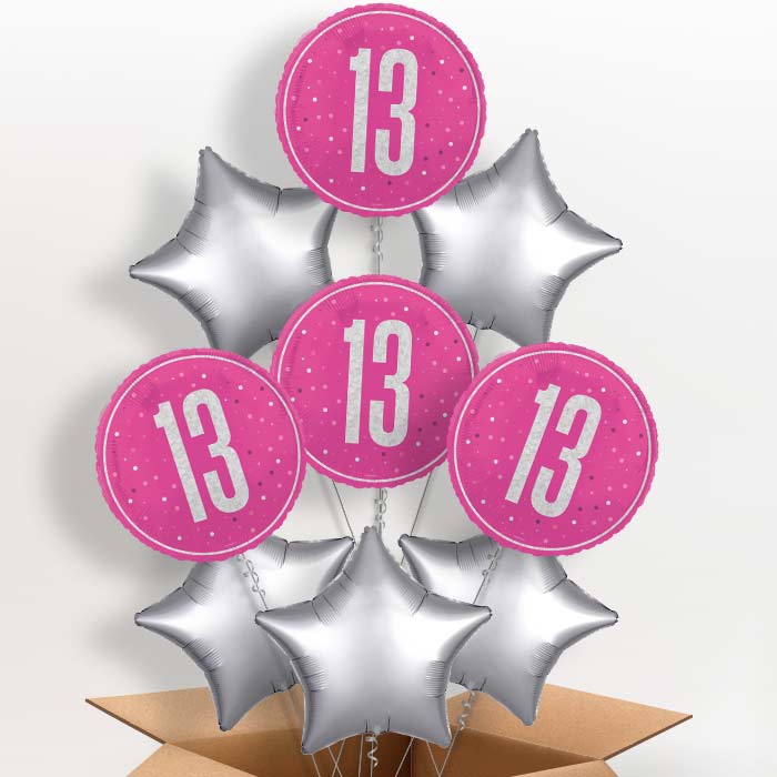 Hot Pink and Silver 13th Birthday Helium Balloon in a Box