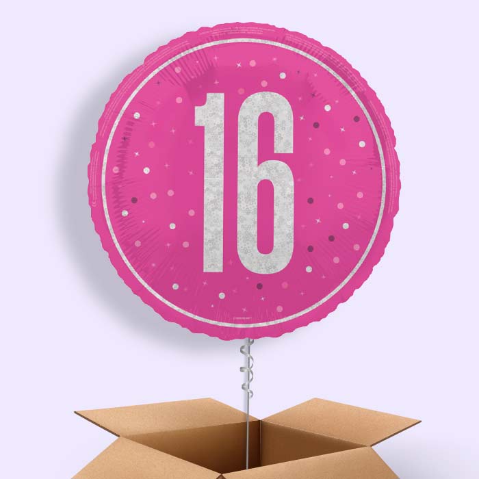 Hot Pink and Silver 16th Birthday Helium Balloon in a Box