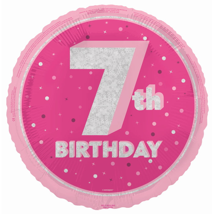 Hot Pink and Silver 7th Birthday Foil Balloon Prismatic