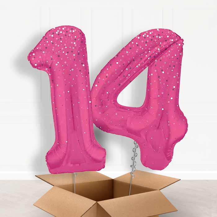 A great Hot Pink Dots 14th Birthday Balloon in a Box surprise.