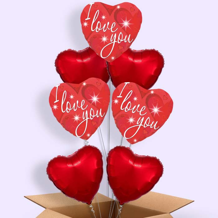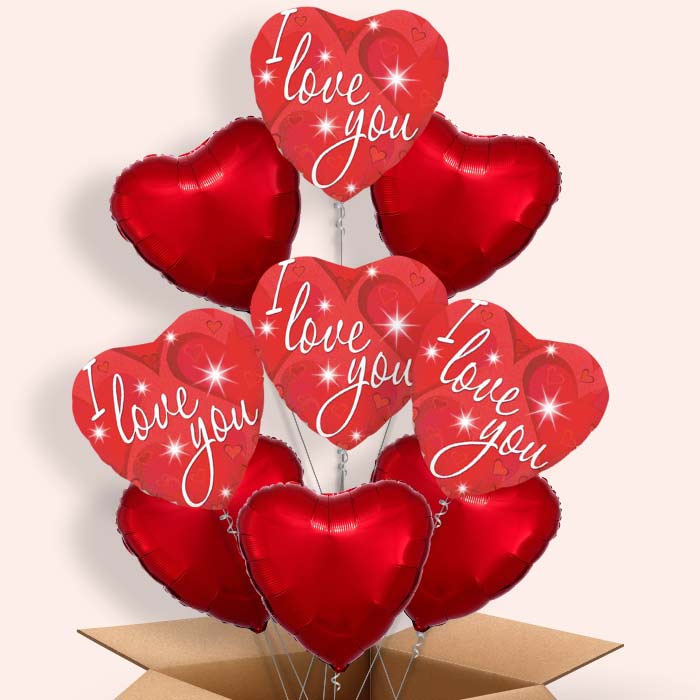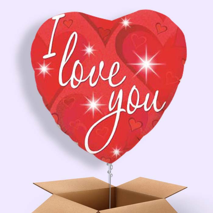 I Love You Sparkle Red Heart Foil Helium Balloon in a Box Gift.