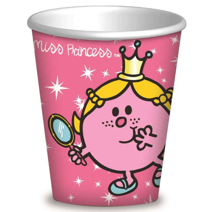 Little Miss Paper Cups for your Party Table. Design features Little Miss and Film character pals.