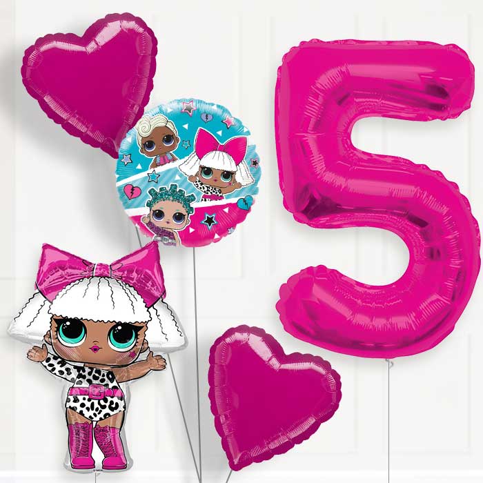 Our Lol Surprise Helium Balloon Package 5th Birthday will ensure you have all the balloons you need for a special 5th Birthday surprise!