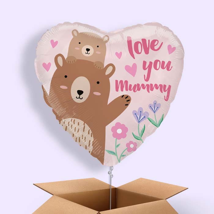 Love you Mummy Bear Balloon in a Box featuring a Mummy Bear design.
