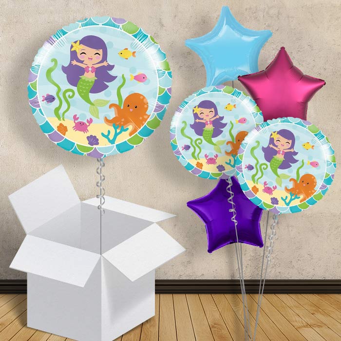 Our Mermaid Friends Balloons in a Box is a great gift for any Mermaid fan, especially as a birthday surprise! They also make a great Mermaid table decoration too!