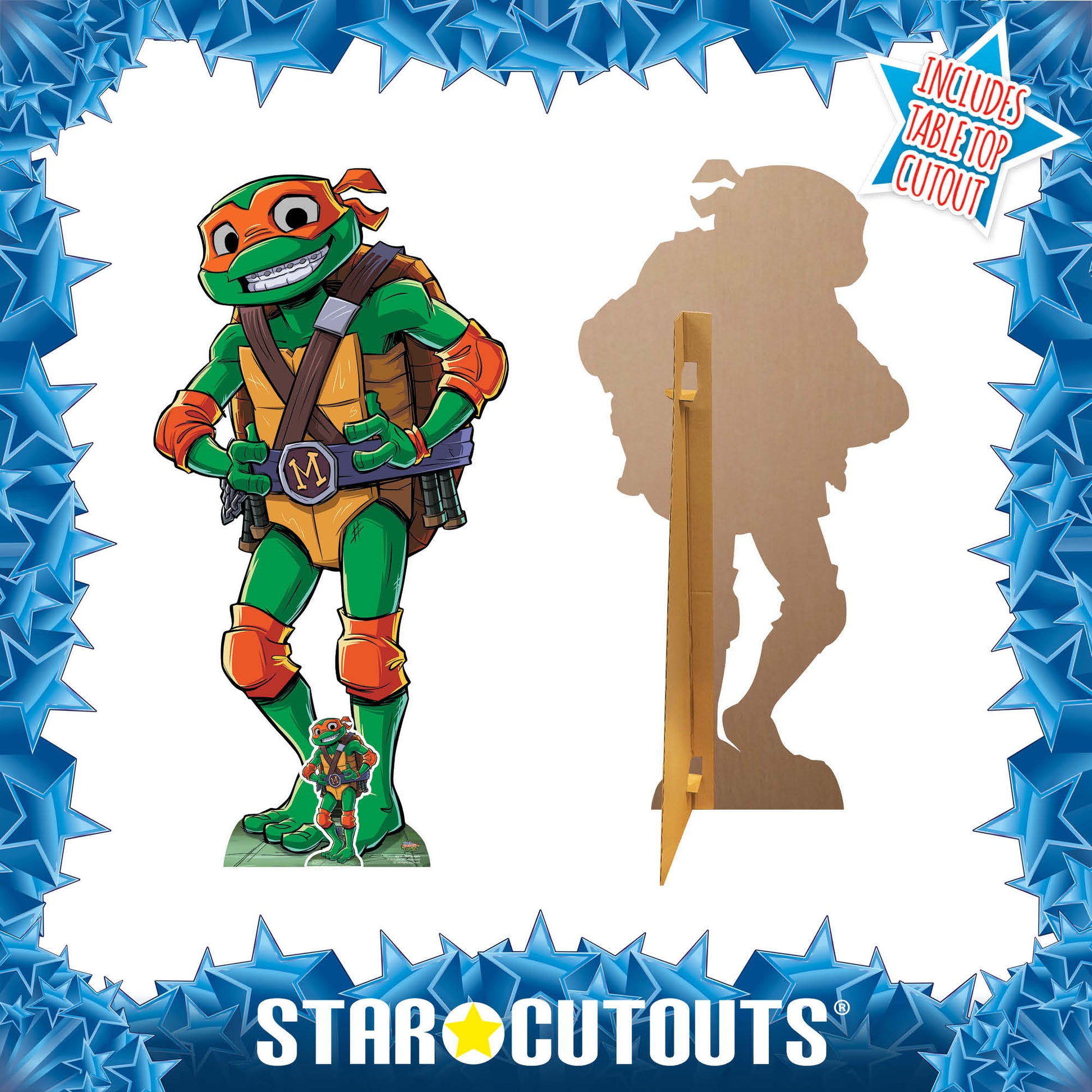 Made from FSC-certified, high-quality cardboard, Mikey is lightweight, easy to assemble and completely freestanding thanks to the attached easel. Pair him with the other Teenage Mutant Ninja Turtles for an amazing group display, or let him shine solo as the life of the party.