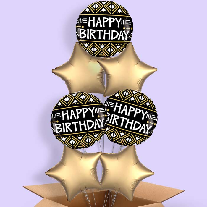 Mud Cloth Print Happy Birthday Helium Balloon in a Box