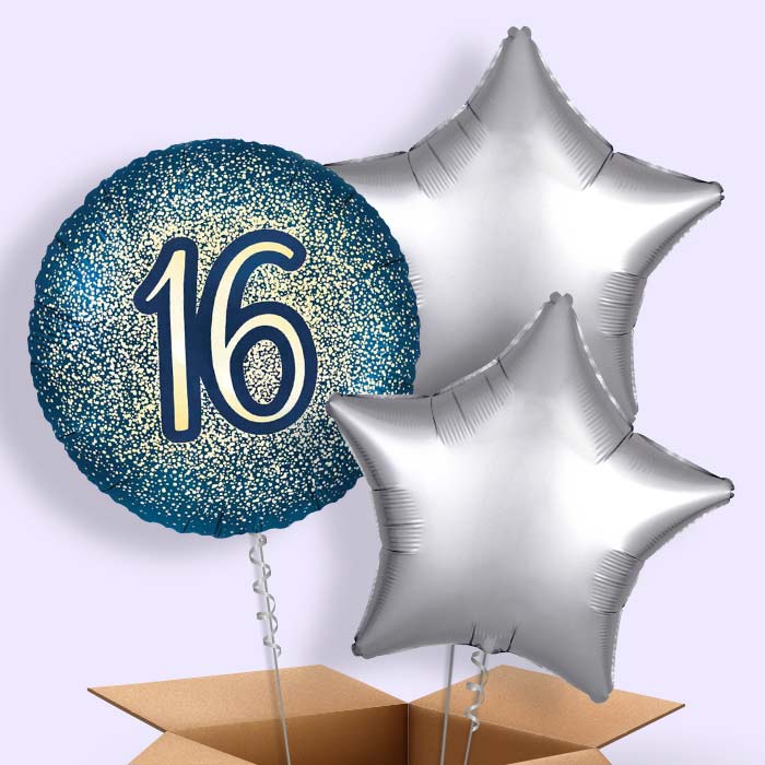 Our Navy and Gold 16th Birthday Foil Balloon in a Box is a great gift makes a great surprise! They also make a great table decoration too!