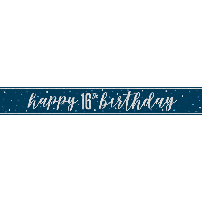 Navy Blue and Silver 16th Birthday Prism Foil Banner 9 ft