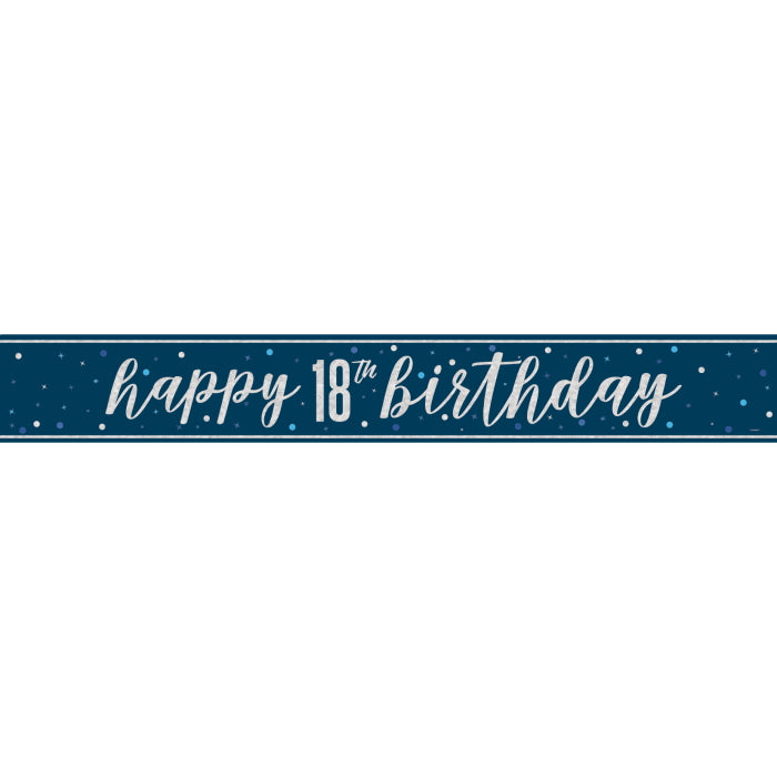 Navy Blue and Silver 18th Birthday Prism Foil Banner 9 ft