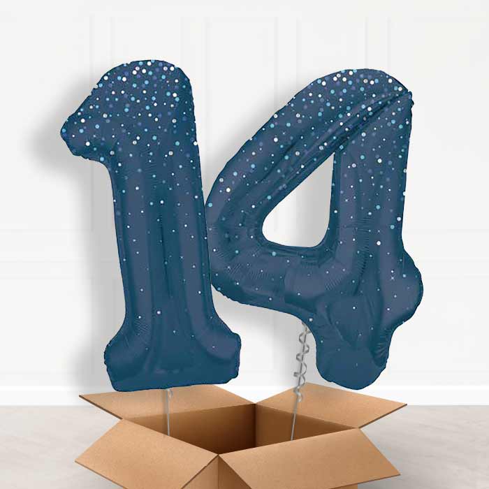 Our Navy Blue Dots 14th Birthday Balloon in a Box is a great surprise especially on a birthday!
