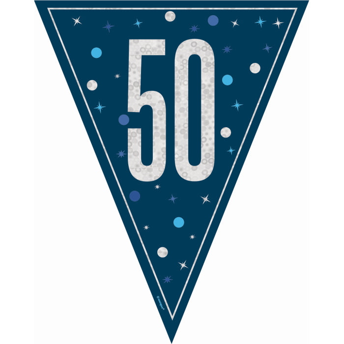 Navy Blue Glitz 50th Birthday Bunting 9 ft
