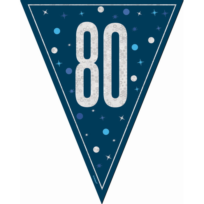 Navy Blue Glitz 80th Birthday Bunting 9 ft