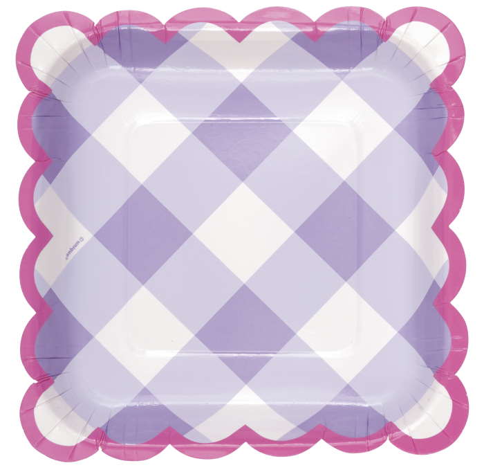 Pretty Pastel Lilac Gingham Party Plates for an joyful celebration.