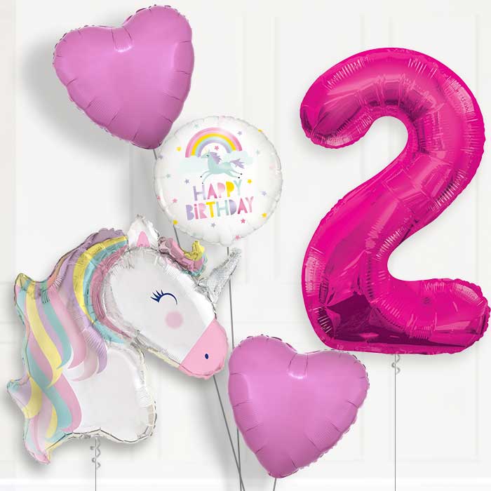 Our Pastel Unicorn Helium Balloon Package 2nd Birthday will ensure you have all the balloons you need for a special 2nd Birthday surprise!