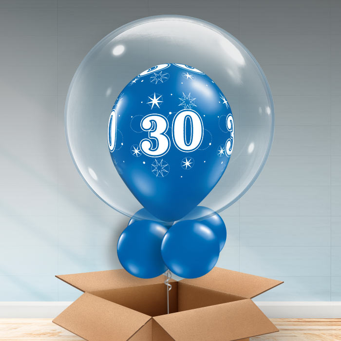 Our Sapphire Blue 30th Birthday Bubble Balloon is a great surprise gift or decoration.