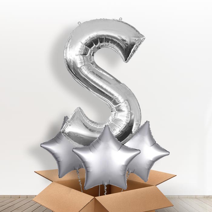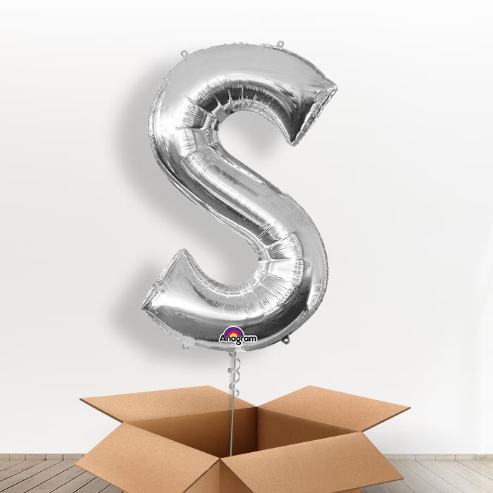 Personalisable Silver Giant Letter S Balloon in a Box Gift.