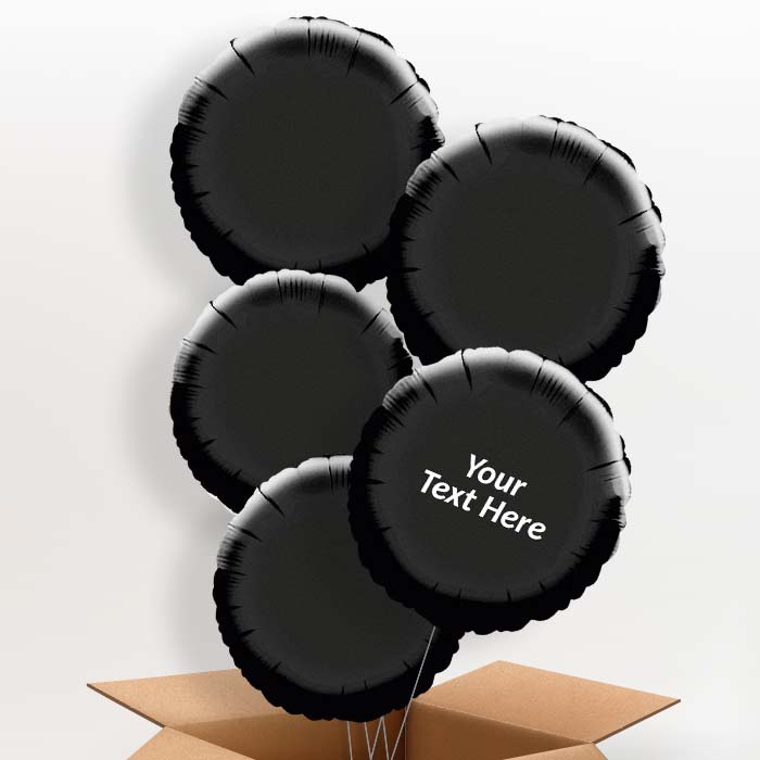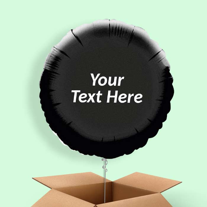 A Personalisable Black Circle Balloon in a Box surprise with a solid black colour.
