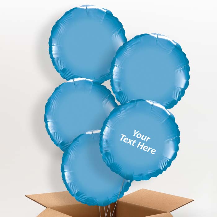 Personalisable Chrome Blue Circle Foil Helium Balloon in a Box Gift.