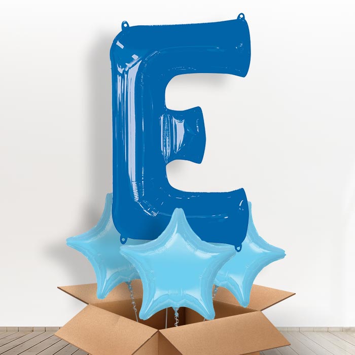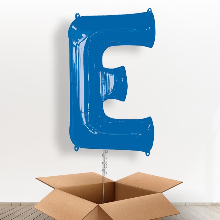 Personalisable Blue Giant Letter E Balloon in a Box Gift.