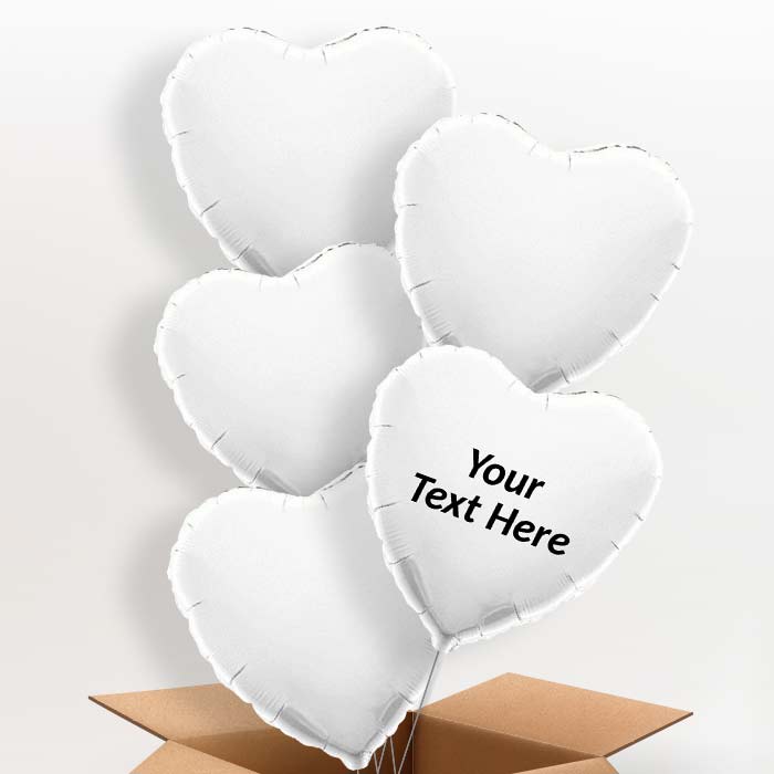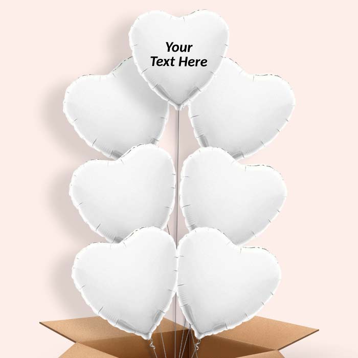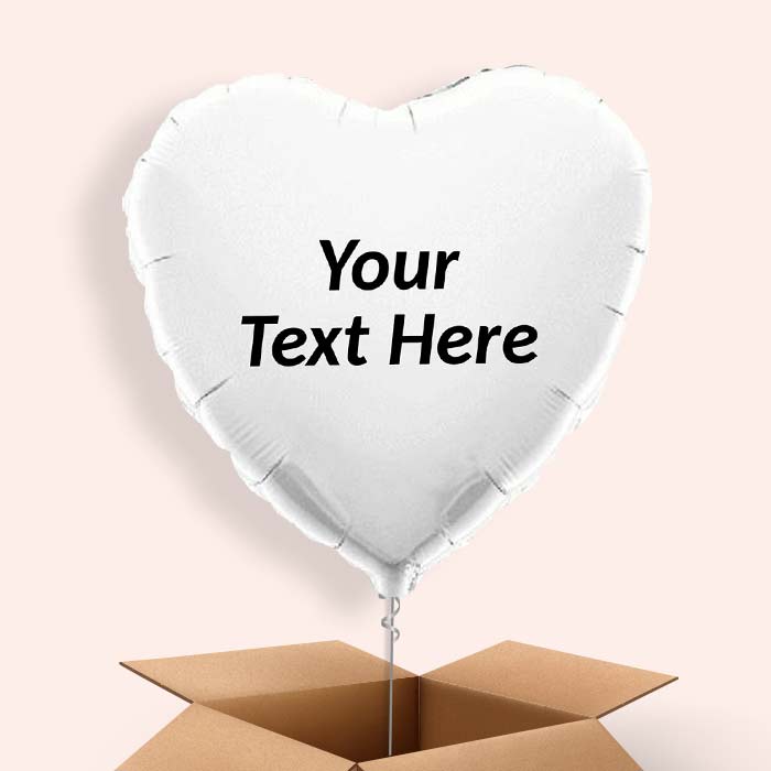 Personalisable White Heart Foil Helium Balloon in a Box Gift.