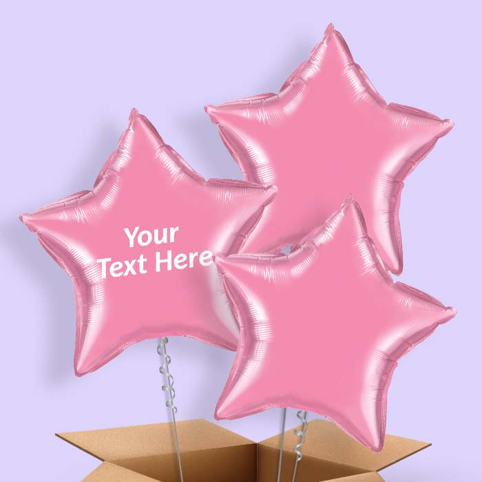 Personalised Hot Pink Star Helium Balloons in a Box