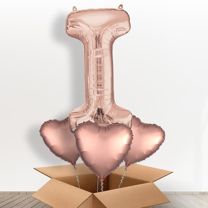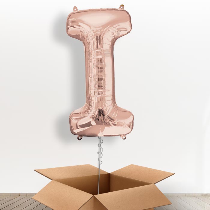 Personalisable Rose Gold Giant Letter I Balloon in a Box Gift.
