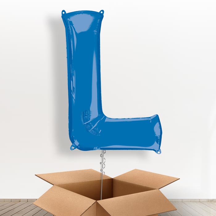Personalisable Blue Giant Letter L Balloon in a Box Gift.