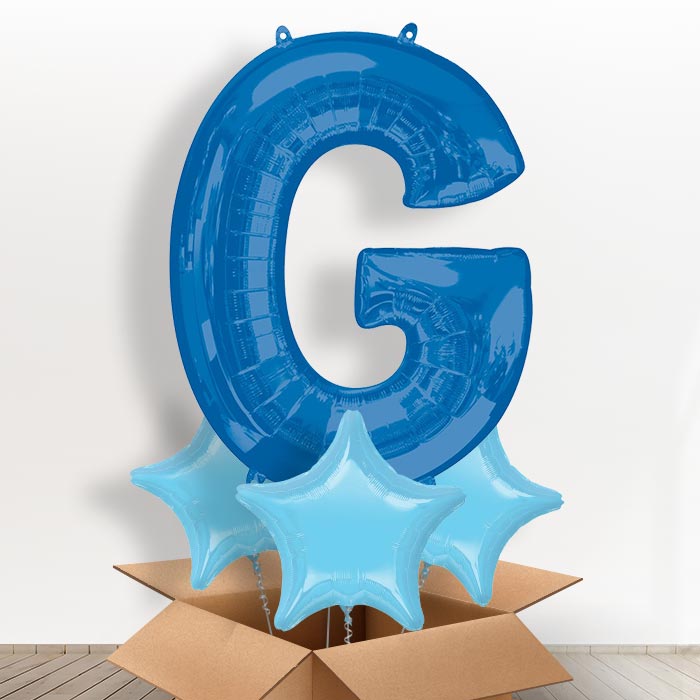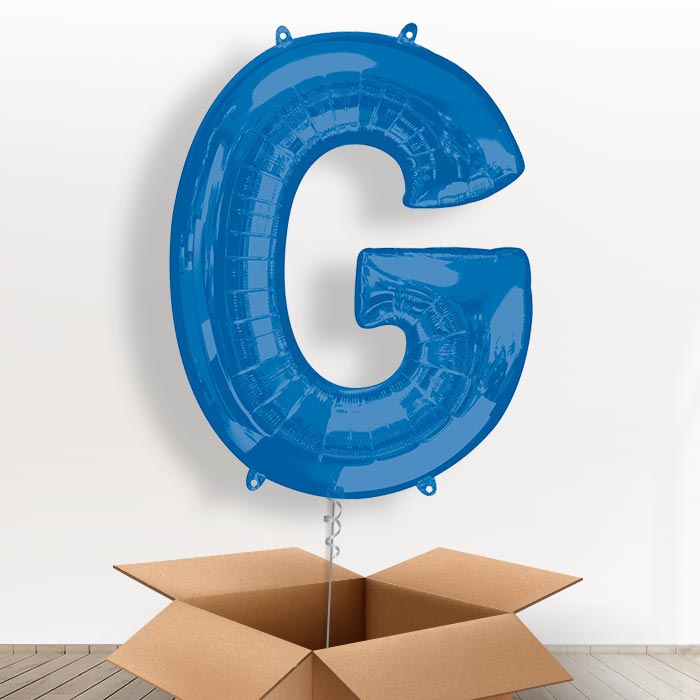 Personalisable Blue Giant Letter G Balloon in a Box Gift.