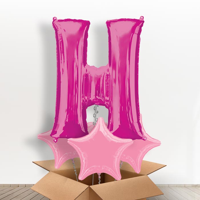 Personalisable Pink Giant Letter H Balloon in a Box Gift.