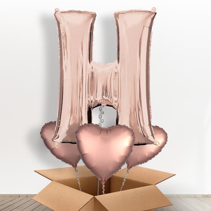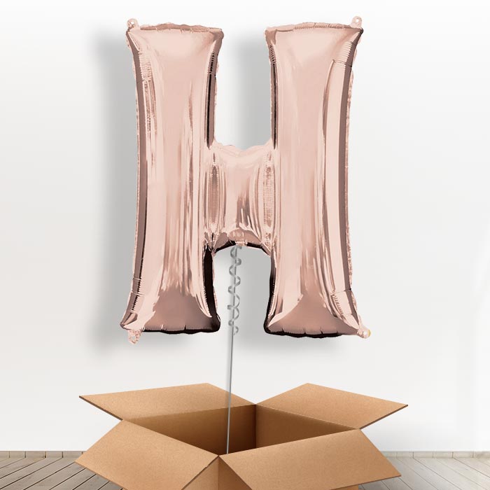 Personalisable Rose Gold Giant Letter H Balloon in a Box Gift.