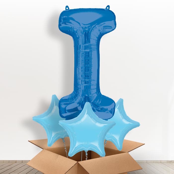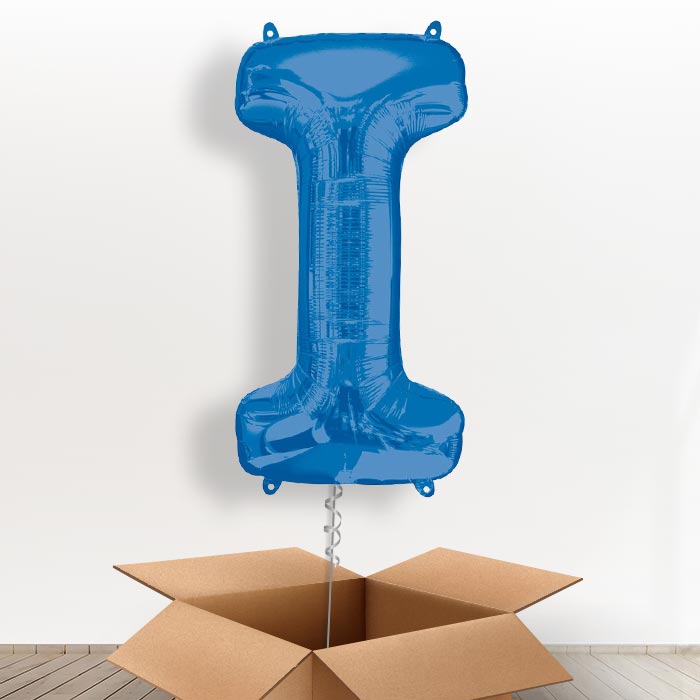 Personalisable Blue Giant Letter I Balloon in a Box Gift.