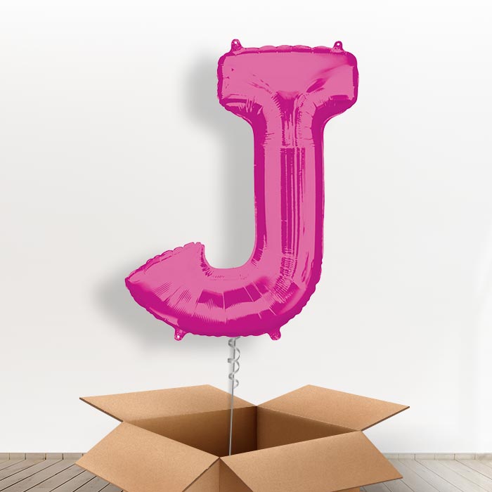 Personalisable Pink Giant Letter J Balloon in a Box Gift.