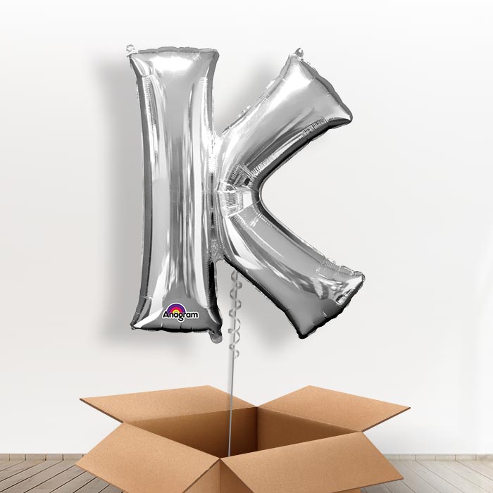 Personalisable Silver Giant Letter K Balloon in a Box Gift.