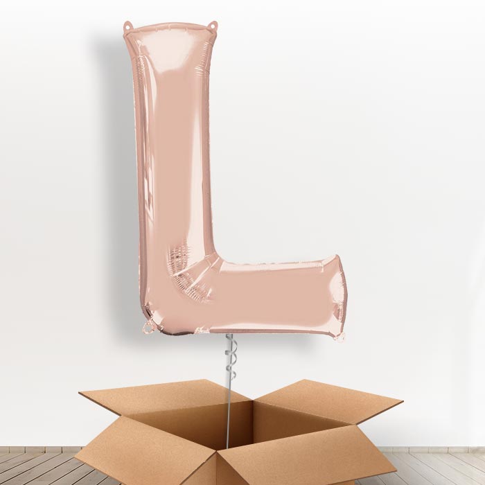 Personalisable Rose Gold Giant Letter L Balloon in a Box Gift.