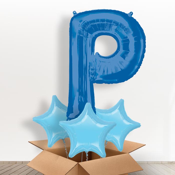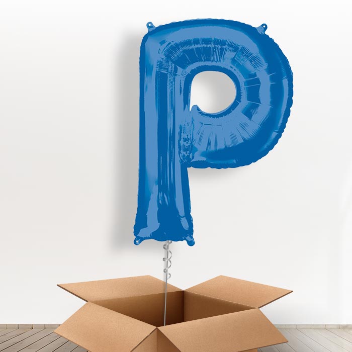 Personalisable Blue Giant Letter P Balloon in a Box Gift.