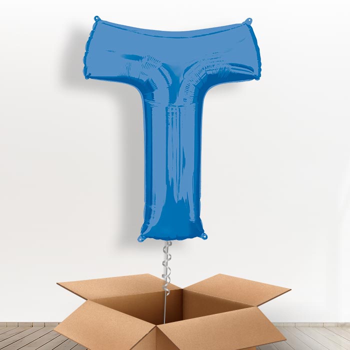 Personalisable Blue Giant Letter T Balloon in a Box Gift.