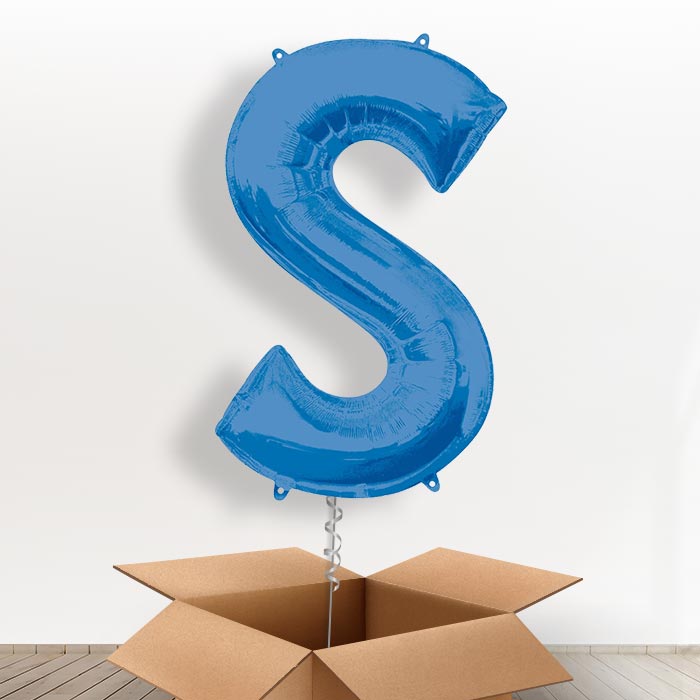 Personalisable Blue Giant Letter S Balloon in a Box Gift.