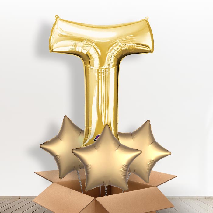 Personalisable Gold Giant Letter T Balloon in a Box Gift.