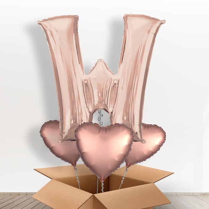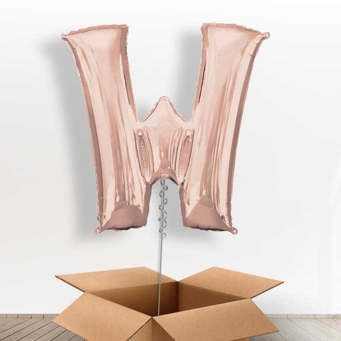 Personalisable Rose Gold Giant Letter W Balloon in a Box Gift.