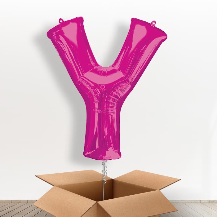 Personalisable Pink Giant Letter Y Balloon in a Box Gift.