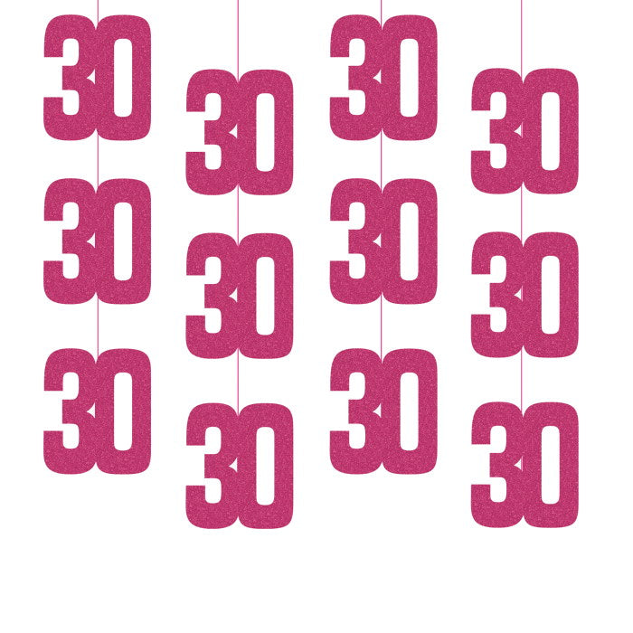 Pink 30th Birthday Hanging String Decorations 6 Pack