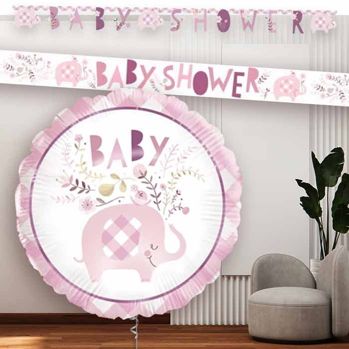 Celebrate a New Arrival in style with Pink Elephant Baby Shower Banners and Balloon.