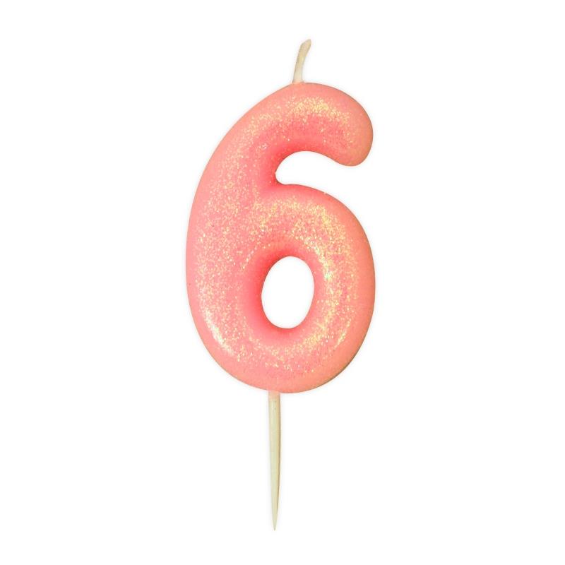 Pink Glitter Number 6 Birthday Cake Candle, perfect for your party cake. Design features Pink Glitter.