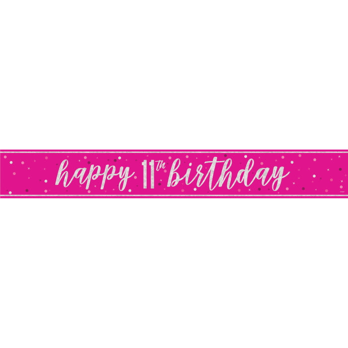 Pink Glitz 11th Birthday Prism Foil Banner 9 ft