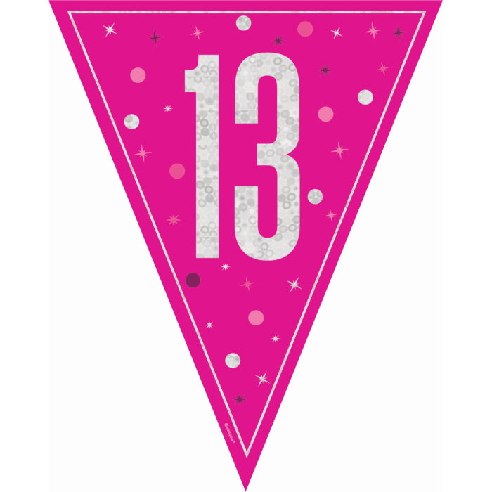 Our Pink Glitz 13th Birthday Bunting is the perfect decoration for a 13th birthday celebration. It is ideal for hanging on a wall or across a doorway.