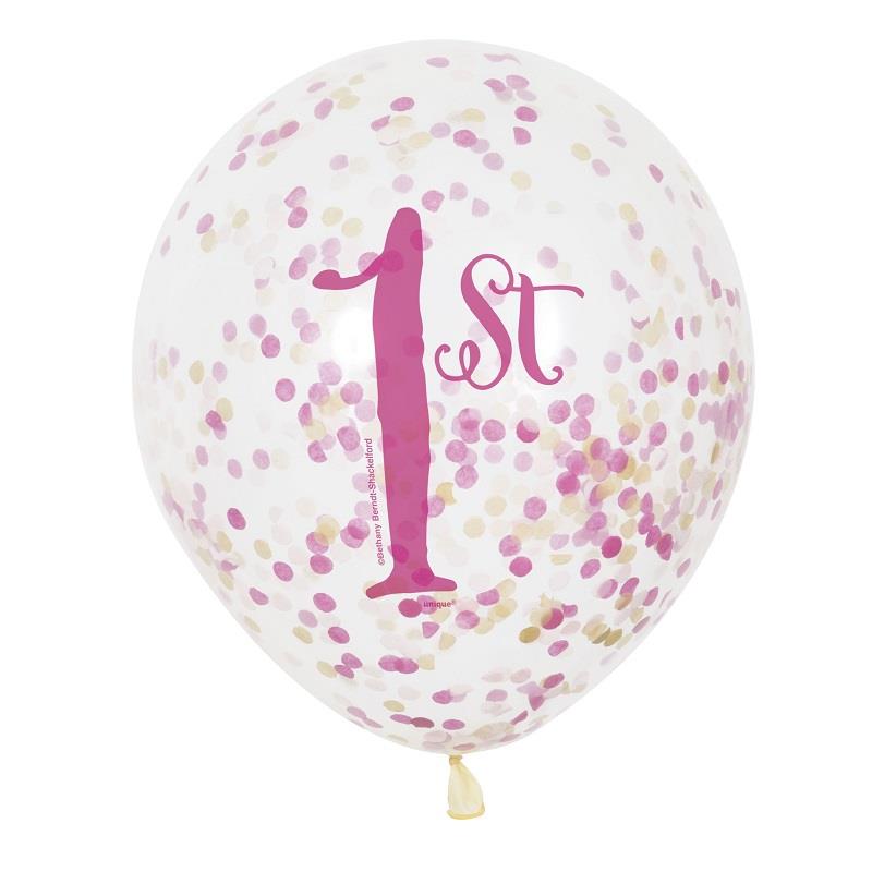 Pink & Gold 1st Birthday Confetti Balloons Pack of 6
