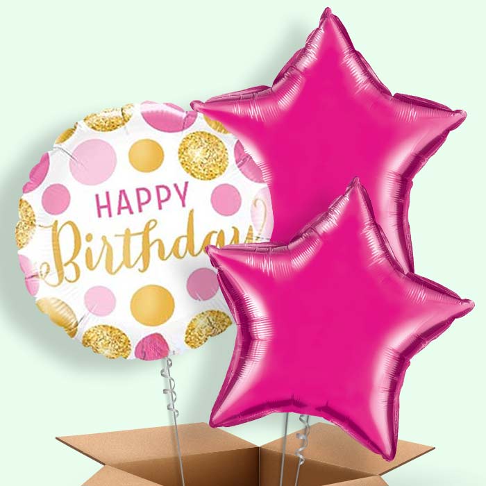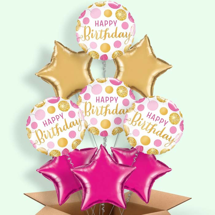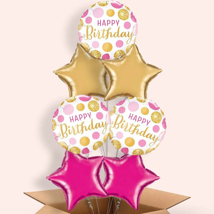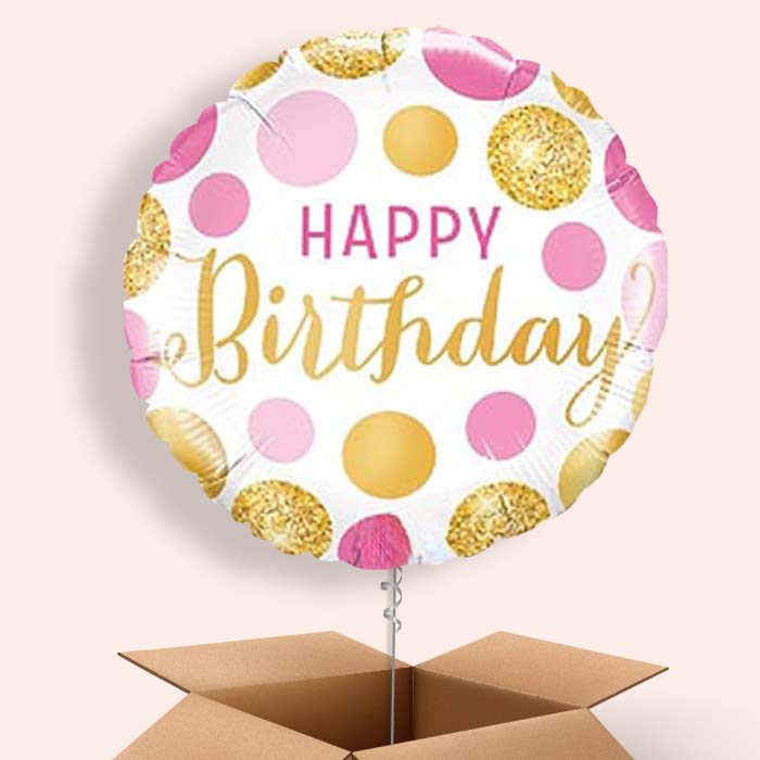 Pink and Gold Dot Happy Birthday Themed Foil Helium Balloon in a Box Gift.